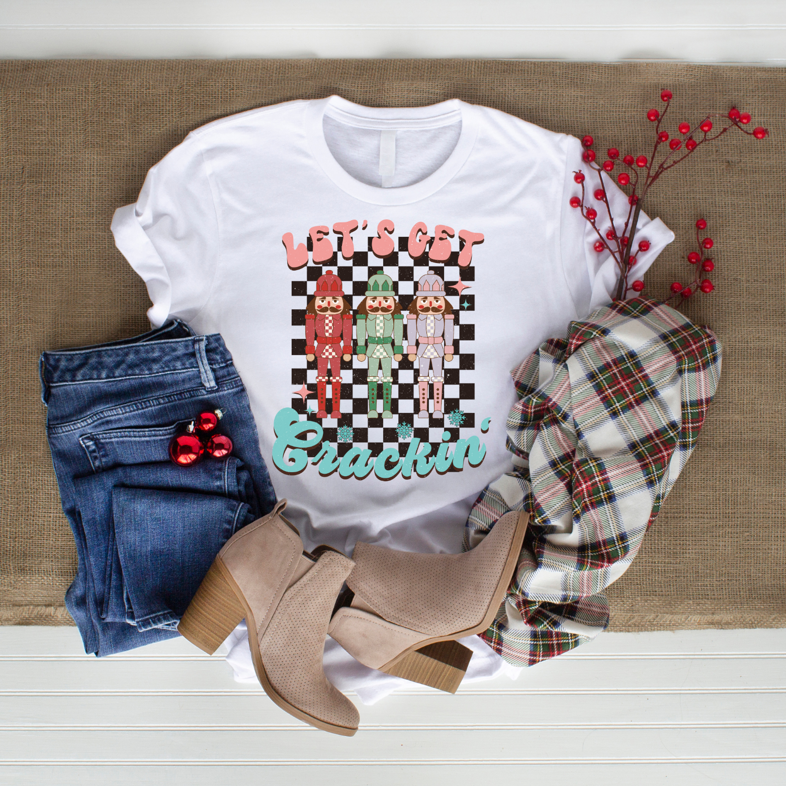 Get ready to crack some jokes in this playful nutcracker tee! Featuring a bold DTF print with an edgy checker background, this design brings fun and feminine vibes to your wardrobe. Perfect for the holidays or anyone who loves a little cheeky humor mixed with style. The crisp, detailed print pops against the geometric backdrop, making it a conversation starter that's equal parts witty and fashion-forward. Comfortable, eye-catching, and unapologetically fun.