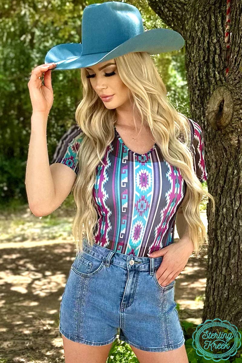 Our TAKE IT EASY BODYSUIT is the perfect way to stay stylish and comfy all day long! Made with a breathable mesh fabric and eye-catching Aztec pattern, it's sure to be your go-to when you just wanna kick back, relax, and take it easy. (Hey, now there's an idea!)